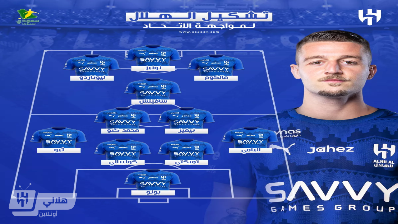 **تشكيلة الهلال الرسمية ضد الاتحاد في دوري روشن**